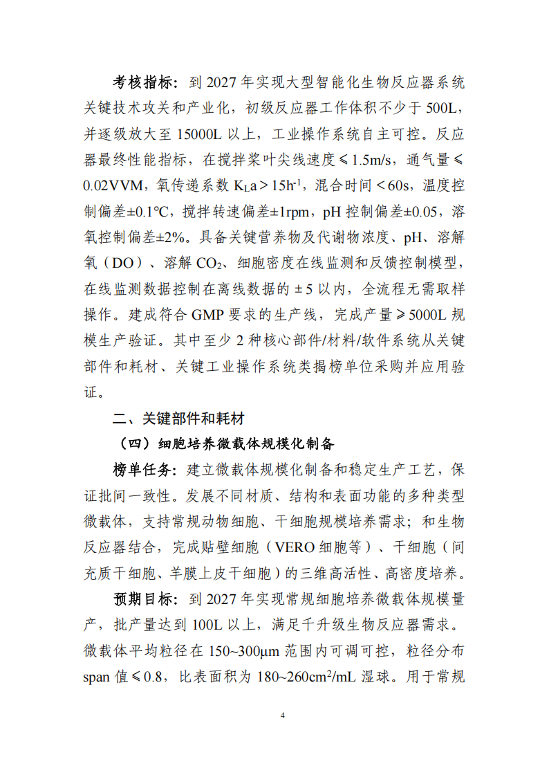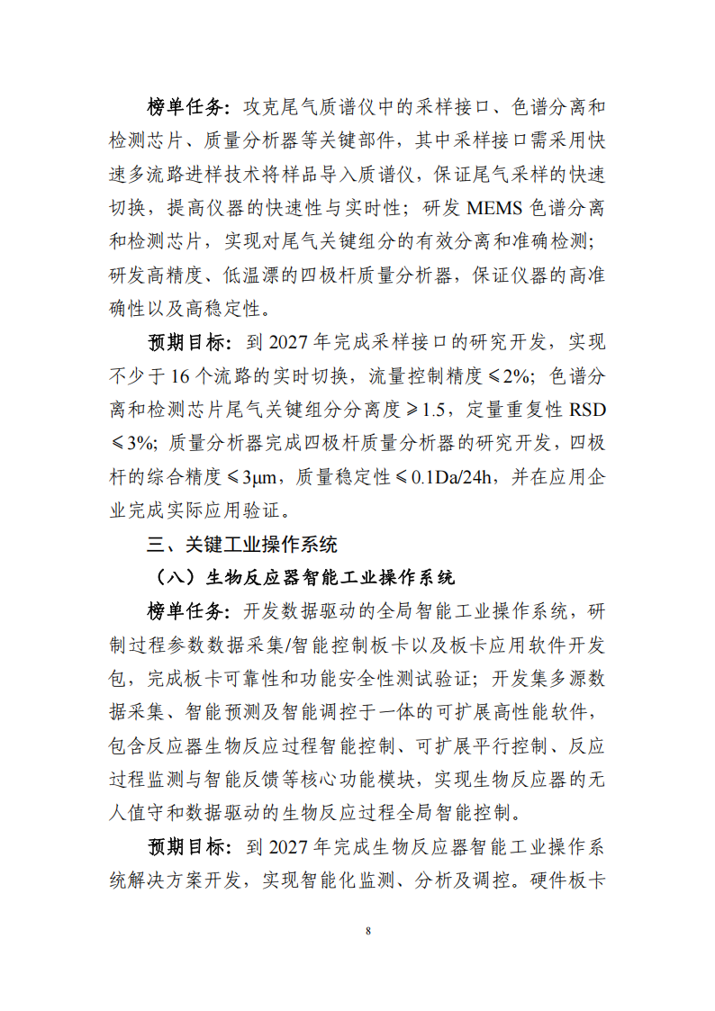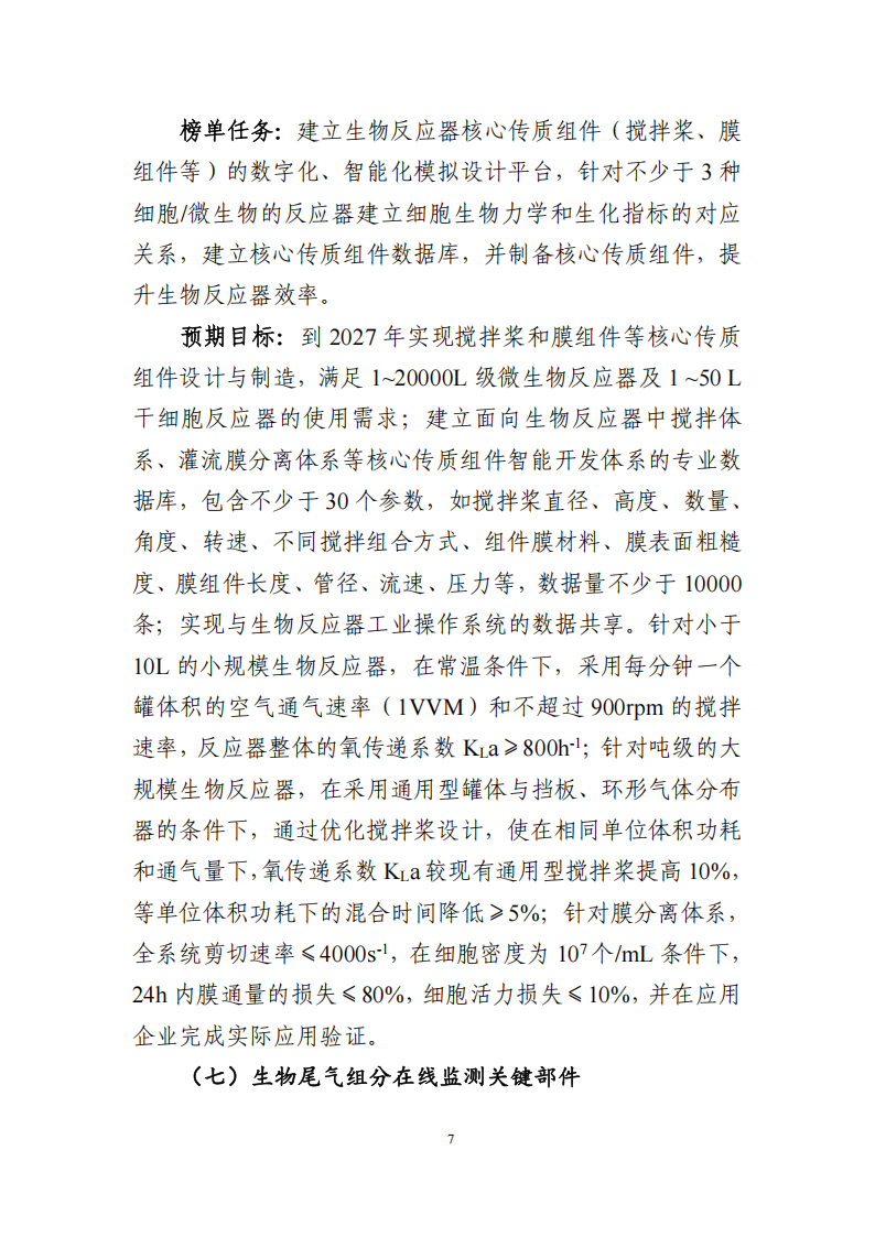 聚焦反應器系統、關鍵部件與耗材、工業操作系統3類9項揭榜任務,遴選培育一批掌握關鍵核心技術、具備較強創新能力的優勢單位,突破一批標志性技術裝備,培育典型應用場景,加速新技術新產品落地應用,提升高性能生物反應器“技術研發—供需匹配—生產制造—規模應用”一體化發展能力。