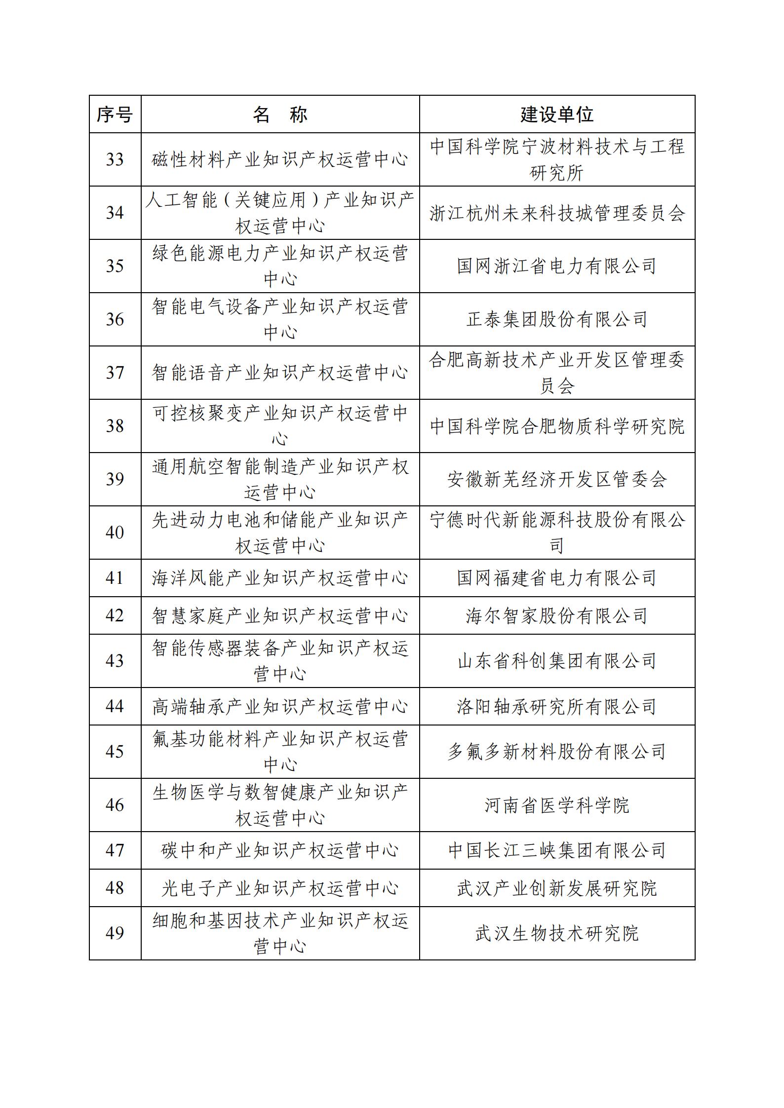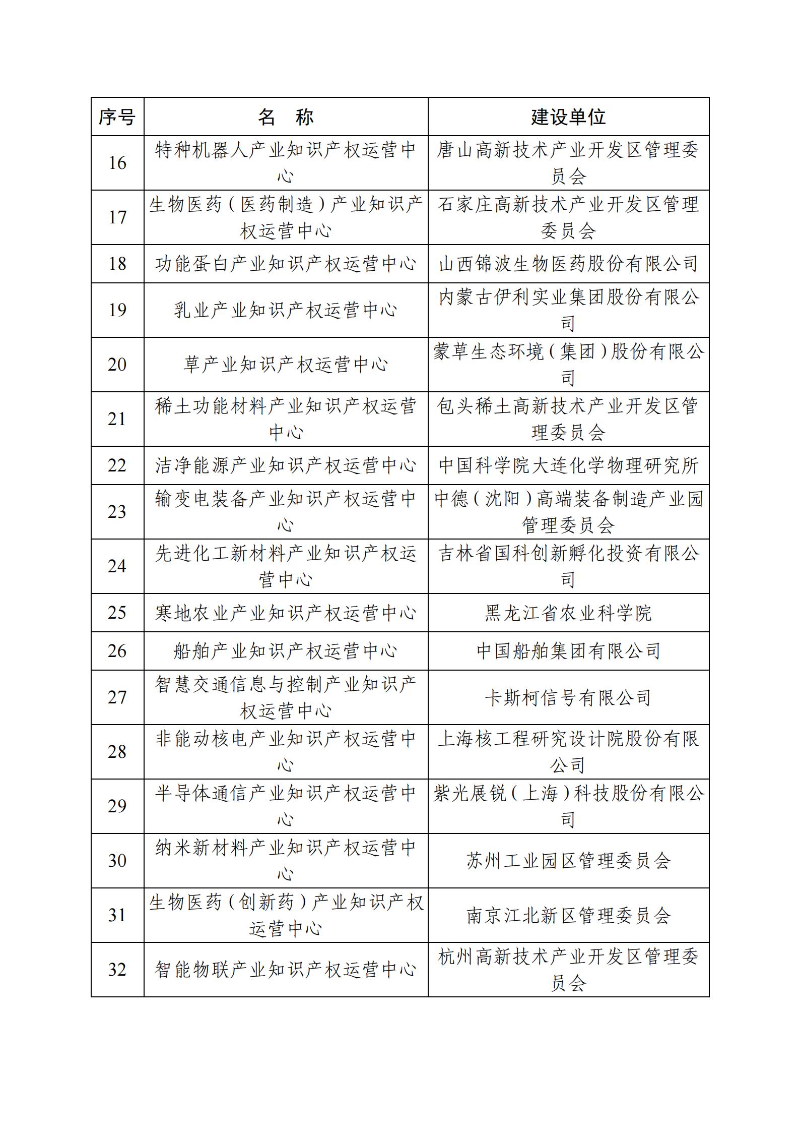 國家知識產權局辦公室關于公布首批產業(yè)知識產權運營中心名單的通知