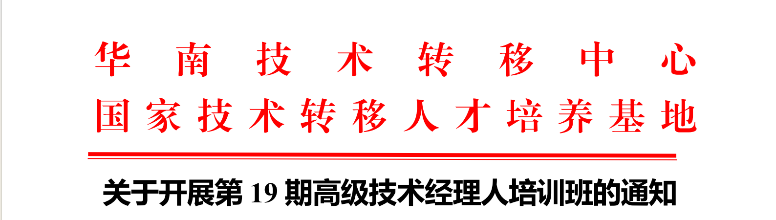 為貫徹《中華人民共和國促進科技成果轉化法》《國家技術轉移體系建設方案》和《 “十 四五”技術要素市場專項規劃》有關精神,創新技術轉移人才發展機制,培養高素質、專業化的技術轉移人才,助力我國經濟高質量發展和創新型國家建設。華南技術轉移中心將聯合國家技術轉移人才培養基地定于2025年11月26-28日在杭州舉辦“ 第19期高級技術經理人培訓班” ,具體通知如下: