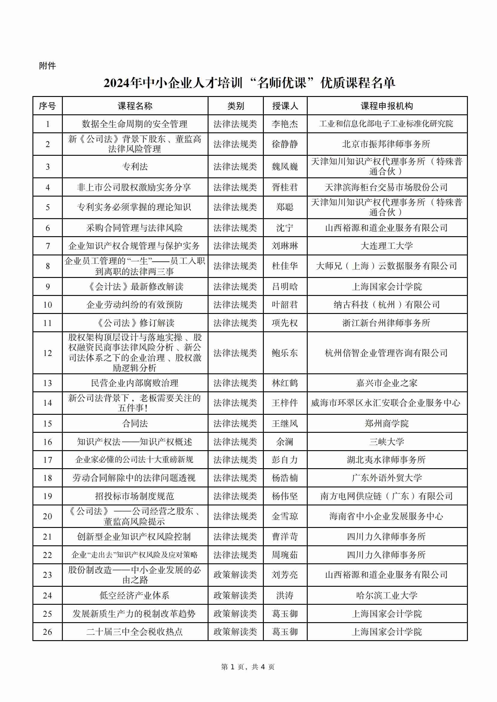 工信部|關于發布2024年中小企業人才培訓“名師優課”優質課程的通知