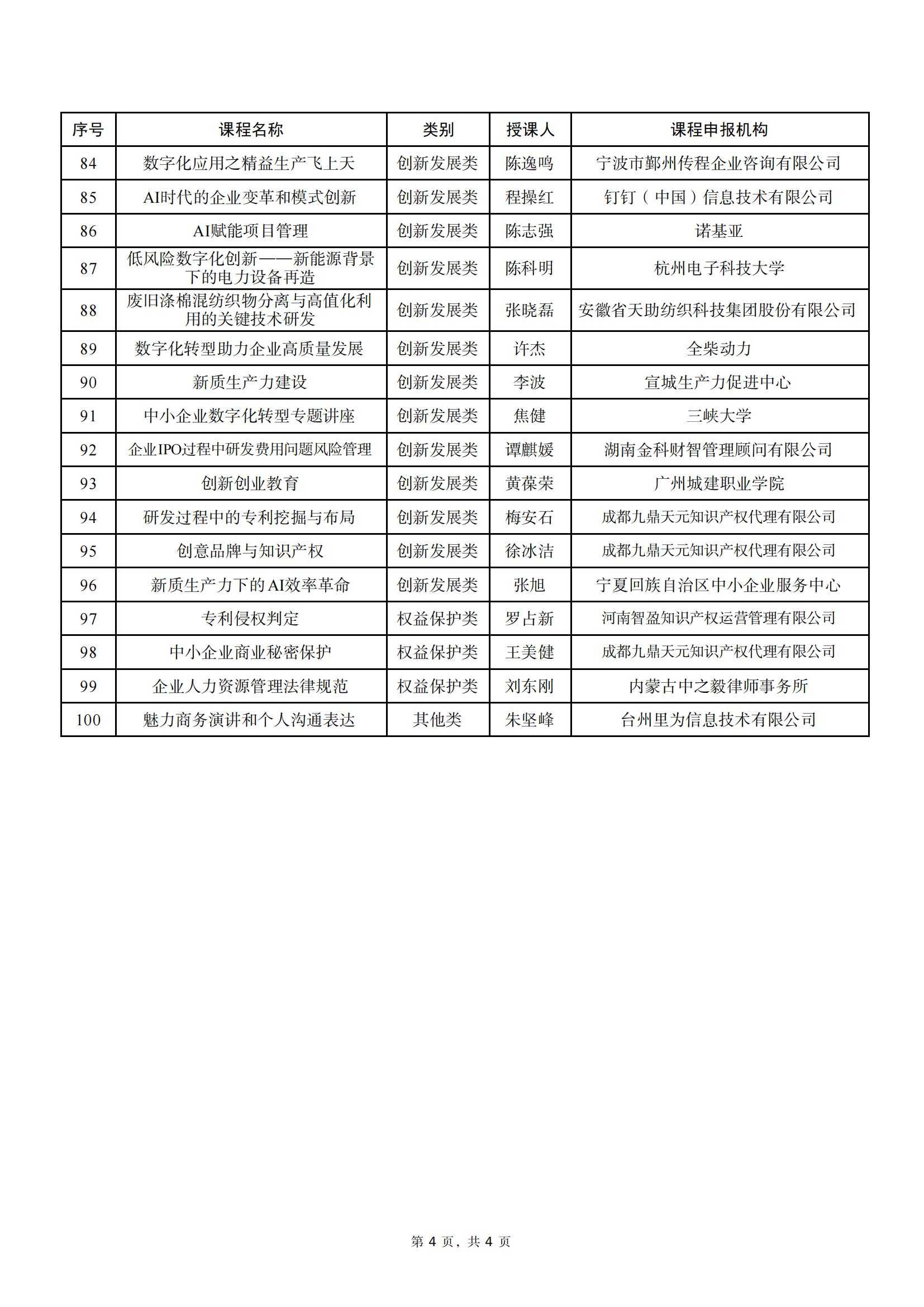 為貫徹落實黨中央、國務院關于促進中小企業發展的決策部署,加強中小企業人才培養公共服務,助力中小企業提升生產經營管理水平,我部組織開展2024年中小企業人才培訓“名師優課”征集遴選活動。經公開征集、各地中小企業主管部門推薦、專家評審、企業家評價等程序,優選出100門優質課程,現予發布。有關事項通知如下: